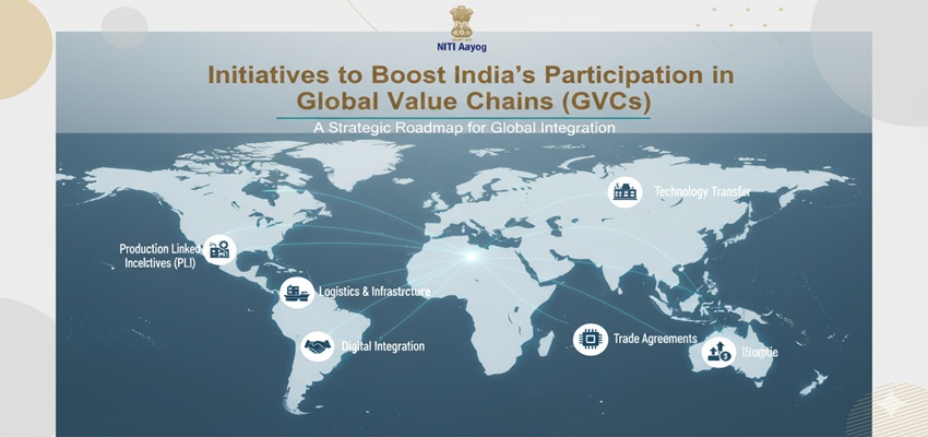 For India, enhancing participation in GVCs is vital for achieving its $5 trillion economy vision, boosting exports, creating jobs, and strengthening technological capabilities. Recognizing this, the Government of India has launched a series of targeted initiatives to position the country as a key player in global supply chains across strategic sectors such as electronics, semiconductors, pharmaceuticals, automobiles, and textiles. 1. Understanding Global Value Chains and India’s Position Global Value Chains (GVCs) refer to the sequence of production stages spread across countries, where each nation adds value to a product before it reaches consumers. Currently, India’s share in GVC-linked exports is modest — around 2–3%, compared to over 25% for China and 15% for ASEAN. Historically, India has been more focused on final goods exports rather than intermediate inputs or technology-driven value additions. However, with reforms in manufacturing policy, trade logistics, and digital infrastructure, India is transitioning from being a “global back office” to a global manufacturing and innovation hub. 2. Policy Vision and Strategic Approach India’s strategy to boost GVC participation is guided by three key principles: Integration: Linking domestic industries with global supply networks. Innovation: Building competitive advantages through R&D and technology. Incentivization: Encouraging investment and exports through fiscal and policy support. The government’s vision aligns with the larger frameworks of: