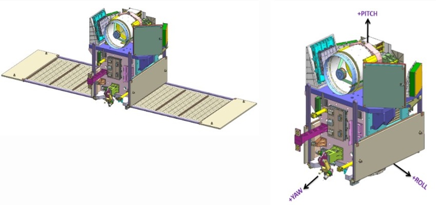 Powerful Payloads for Diverse Applications Built on the robust Microsat/IMS-1 bus, the approximately 175.5 kg EOS-08, with a mission life of 1 year, carries three cutting-edge payloads: Electro Optical Infrared Payload (EOIR): Developed by the Space Applications Centre (SAC-ISRO), this state-of-the-art payload captures images in the Mid-Wave IR (MIR) and Long-Wave IR (LWIR) bands, day and night. Its applications are extensive: