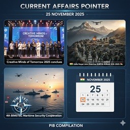 25 नवम्बर 2025 की कुछ महत्वपूर्ण घटनाओं का संकलन जिसको PIB से संग्रहित किया गया है। A compilation of some important events of 25 November 2025, collected from PIB