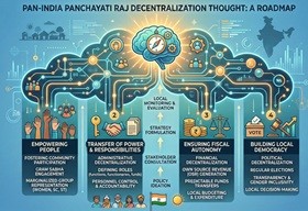 पंचायती राज संस्थाएँ (PRIs): संवैधानिक ढाँचा और शक्तियों का हस्तांतरण शक्तियों के हस्तांतरण की अवधारणा (3Fs) किसी पंचायत की प्रभावशीलता राज्य से तीन महत्वपूर्ण तत्वों के हस्तांतरण पर निर्भर करती है: कार्य (Functions): वास्तविक काम/कार्य (कृषि, स्वास्थ्य आदि जैसे 29 विषय)। निधि (Funds): वित्तीय संसाधन और कर लगाने की शक्ति। पदाधिकारी (Functionaries): कर्मचारी और प्रशासनिक नियंत्रण। वर्तमान स्थिति: पूरे भारत में प्रदर्शन में काफी भिन्नता है, क्योंकि शक्तियों का हस्तांतरण संबंधित राज्य विधानमंडलों की "इच्छा" पर निर्भर करता है। शक्तियों के हस्तांतरण का सूचकांक रिपोर्ट (फरवरी 2025) मंत्रालय ने जमीनी स्तर के लोकतंत्र की स्थिति को मापने के लिए "राज्यों में पंचायतों को शक्तियों के हस्तांतरण की स्थिति—एक सांकेतिक साक्ष्य-आधारित रैंकिंग, 2024" नामक रिपोर्ट जारी की। रैंकिंग के छह आयाम: ढाँचा (Framework): सहायक कानूनों और नियमों की मौजूदगी। कार्य (Functions): 29 विषयों में से कितने विषय वास्तव में पंचायतों द्वारा संभाले जाते हैं। वित्त (Finance): अपने स्रोतों से राजस्व और निधियों के प्रवाह की स्थिति। पदाधिकारी (Functionaries): गाँव स्तर पर मानव संसाधन की पर्याप्तता। क्षमता निर्माण (Capacity Building): चुने हुए प्रतिनिधियों को दिया जाने वाला प्रशिक्षण। जवाबदेही (Accountability): सामाजिक लेखा-परीक्षण (Social Audits) और पारदर्शी लेखांकन का उपयोग।