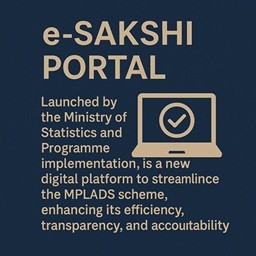 The e-SAKSHI portal, launched by the Ministry of Statistics and Programme Implementation, is a digital platform for the MPLADS (Members of Parliament Local Area Development Scheme) program. ई-साक्षी पोर्टल को सांख्यिकी एवं कार्यक्रम कार्यान्वयन मंत्रालय द्वारा एमपीलैड योजना (Members of Parliament Local Area Development Scheme) के तहत लॉन्च किया गया है।