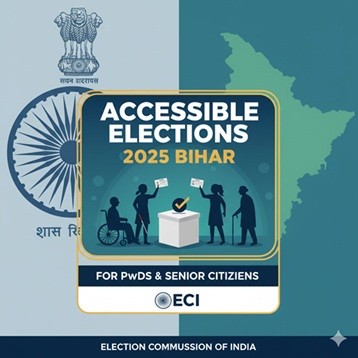 The Election Commission of India (ECI) has issued directions to ensure accessible and inclusive elections for Persons with Disabilities (PwDs) and senior citizens during the General Elections to the Legislative Assembly of Bihar (2025) and bye-elections in 8 Assembly Constituencies (ACs). (भारत निर्वाचन आयोग (ECI) ने दिव्यांग जनों (PwDs) और वरिष्ठ नागरिकों के लिए चुनाव प्रक्रिया को अधिक सुलभ और समावेशी बनाने के उद्देश्य से दिशा-निर्देश जारी किए हैं। ये प्रावधान बिहार विधानसभा के आम चुनाव (2025) तथा 8 विधानसभा क्षेत्रों के उपचुनावों में लागू होंगे।)