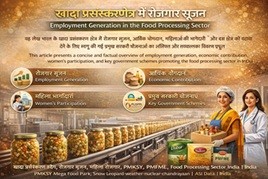 यह लेख भारत के खाद्य प्रसंस्करण क्षेत्र में रोजगार सृजन, आर्थिक योगदान, महिलाओं की भागीदारी और इस क्षेत्र को बढ़ावा देने के लिए लागू की गई प्रमुख सरकारी योजनाओं का संक्षिप्त और तथ्यात्मक विवरण प्रस्तुत करता है। This article presents a concise and factual overview of employment generation, economic contribution, women’s participation, and key government schemes promoting the food processing sector in India.