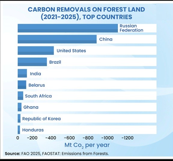 The Food and Agriculture Organization (FAO) released the Global Forest Resources Assessment (GFRA) 2025 on 22 October 2025. It provides updated data on forest cover, carbon sinks, and land-use change across countries. संयुक्त राष्ट्र के खाद्य और कृषि संगठन (FAO) ने वैश्विक वन संसाधन मूल्यांकन (Global Forest Resources Assessment – GFRA 2025) रिपोर्ट 22 अक्टूबर 2025 को जारी की। इस रिपोर्ट में विश्व भर के देशों के वनों की स्थिति, कार्बन अवशोषण क्षमता, और भूमि उपयोग परिवर्तन से संबंधित अद्यतन आंकड़े शामिल हैं।