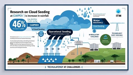 India’s IITM is researching cloud seeding, with the CAIPEEX study showing up to a 46% increase in rainfall. The technology has potential, but faces operational and regulatory challenges. (भारत का IITM क्लाउड सीडिंग पर शोध कर रहा है; CAIPEEX अध्ययन में 46% तक वर्षा वृद्धि देखी गई। तकनीक में क्षमता है, लेकिन परिचालन और नियामक चुनौतियाँ बनी हुई हैं।)