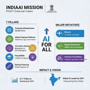 Conclusion: India’s inclusive AI approach is transforming governance, economy, and education. Through the IndiaAI Mission and initiatives like Bhashini and BharatGen, the country is on its way to becoming a global AI leader by 2047, ensuring that technological progress benefits every citizen.
