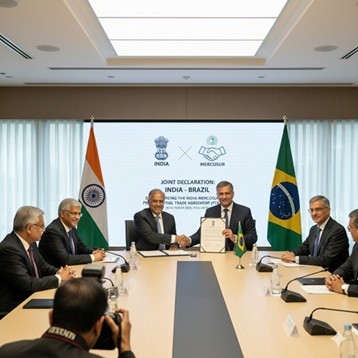 During a meeting in New Delhi on 16 October 2025, India and Brazil issued a Joint Declaration to deepen the existing India–MERCOSUR Preferential Trade Agreement (PTA). 16 अक्टूबर 2025 को नई दिल्ली में भारत और ब्राज़ील ने भारत–मर्कोसुर वरीयता व्यापार समझौते (PTA) को और गहरा करने के लिए एक संयुक्त घोषणा पत्र जारी किया।