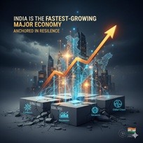 भारत वैश्विक संकटों (कोविड, मंदी) के बावजूद सुदृढ़ता के आधार पर सबसे तेज़ी से बढ़ती प्रमुख अर्थव्यवस्था है। India is the fastest-growing major economy, anchored in resilience against global crises like the pandemic and recessions.
