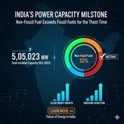 31 अक्टूबर 2025 तक भारत की कुल स्थापित विद्युत उत्पादन क्षमता 5,05,023 मेगावाट हो गई है। उल्लेखनीय उपलब्धि यह है कि पहली बार देश की ऊर्जा संरचना में गैर-जीवाश्म ईंधन स्रोतों की हिस्सेदारी जीवाश्म ईंधन आधारित स्रोतों से अधिक हो गई है, जो स्वच्छ ऊर्जा संक्रमण में एक ऐतिहासिक प्रगति है। As of 31 October 2025, India’s total installed power generation capacity has reached 5,05,023 MW. Importantly, the share of non-fossil fuel sources has exceeded that of fossil fuel-based sources in the national energy mix, marking a historic milestone in the country’s clean energy transition.
