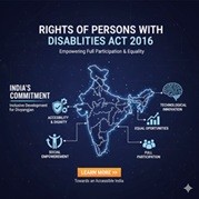 भारत दिव्यांगजनों की समानता, गरिमा और पहुंच सुनिश्चित करने के लिए लगातार प्रयासरत है। समावेशी विकास की भावना से प्रेरित होकर सरकार ने कानूनी प्रावधानों, तकनीकी नवाचारों और सामाजिक सशक्तिकरण पहलों के माध्यम से एक मजबूत ढांचा तैयार किया है। दिव्यांगजन अधिकार अधिनियम 2016 इस दिशा में एक महत्वपूर्ण कदम है जो दिव्यांगजनों की पूर्ण भागीदारी और समान अवसरों की गारंटी देता है। India has demonstrated a strong commitment to promoting equality, dignity and accessibility for persons with disabilities. Guided by the vision of inclusive development, the government has built a comprehensive legal and policy framework supported by advanced technology, institutional mechanisms and social empowerment programs. The Rights of Persons with Disabilities Act, 2016 marks a landmark step toward creating an environment where persons with disabilities enjoy full participation and equal opportunities.