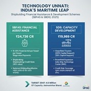 The Ministry of Ports, Shipping and Waterways (MoPSW) has released operational guidelines for two landmark schemes—Shipbuilding Financial Assistance Scheme (SBFAS) and Shipbuilding Development Scheme (SBDS)—aimed at strengthening domestic shipbuilding and improving global competitiveness. Shipbuilding Financial Assistance Scheme (SBFAS) - ₹24,736 Crore: Under this scheme, the government will provide financial assistance ranging from 15% to 25% for each vessel depending on its category. It includes stage-wise payments linked to milestones and incentives for series orders. National Shipbuilding Mission: A national mission will be established for the coordinated planning and execution of shipbuilding initiatives. Shipbreaking Credit Note: Ship owners scrapping vessels in Indian yards will receive credit equal to 40% of the scrap value, which can be linked to new ship construction. Shipbuilding Development Scheme (SBDS) - ₹19,989 Crore: This scheme focuses on building long-term capacity, capability, and modernization. Greenfield and Brownfield Development: New greenfield clusters will receive 100% capital support (via Centre-State SPV), while existing shipyards will get 25% assistance for modernization and expansion of infrastructure like dry docks and automation. India Ship Technology Center: Will be set up under the Indian Maritime University (IMU) to support research, design, innovation, and skill development. Credit Risk Coverage: Government-backed insurance will be provided to cover pre-shipment, post-shipment, and vendor-default risks to improve bankability. Targets and Way Forward: The Ministry projects that India’s commercial shipbuilding capacity will rise to 4.5 million Gross Tonnage (GT) per annum by 2047. These schemes remain valid until March 31, 2036, aiming to establish India as a major maritime nation under 'Atmanirbhar Bharat'.