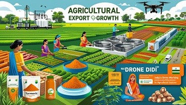 Current Status and Potential: India's agricultural and fisheries exports have reached ₹4.5 lakh crore, with the potential to grow to ₹20 lakh crore. Required Improvements: To achieve this potential, India needs to strengthen its food processing, branding, and packaging quality. New Export Products: Traditionally non-exported products such as litchi, pineapple, gourd, and jamun are now reaching international markets like the UK, Doha, and Dubai. Self-Reliance and Technological Innovation Self-Reliance: An emphasis was placed on being prepared for any global disruptions in agricultural imports and ensuring self-reliance in all agricultural commodities, including seeds, fertilizers, and pesticides. Drip Irrigation: Drip irrigation was highlighted as a 'game-changing' technology, especially for rain-fed areas. There is a call to make it a mass movement to reduce water wastage and increase crop reliability. Smart Pumps: The recommendation was made to replace old pumps with low-energy smart pumps that can be controlled via mobile phones. These pumps can monitor water usage and reduce damage from over-irrigation. Government Initiatives and Future Direction Turmeric Board: The recent formation of the Turmeric Board is a step towards promoting spice exports. Organic and Natural Farming: There is immense potential in organic and natural farming. The government is strengthening certification for organic products using blockchain technology to ensure reliability and traceability. Drone Didi Initiative: The Drone Didi initiative has trained 1.5 lakh women to use drones for spraying fertilizers. Agriculture Infrastructure Fund: A ₹1 lakh crore Agriculture Infrastructure Fund is assisting the development of farm infrastructure. e-NAM Platform: 1,400 mandis have been strengthened and linked to the e-NAM platform to ensure transparency in pricing.