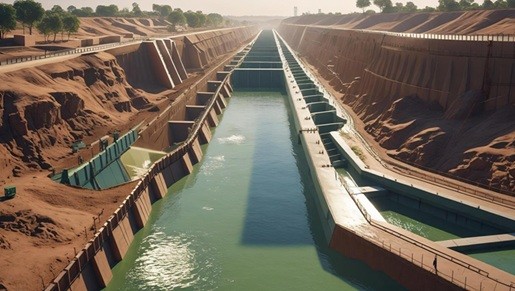 The National Interlinking of Rivers plan, led by NWDA, aims to transfer surplus water to deficit areas. The Ken-Betwa Link is its first ongoing project. NWDA के नेतृत्व में राष्ट्रीय नदी जोड़ो परियोजना का उद्देश्य अतिरिक्त जल को कमी वाले क्षेत्रों में स्थानांतरित करना है। केन-बेतवा लिंक इसकी पहली कार्यान्वित परियोजना है।