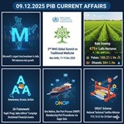 09 December 2025 की कुछ महत्वपूर्ण घटनाओं का संकलन जिसको PIB से संग्रहित किया गया है। A compilation of some important events of 09 December 2025, collected from PIB.