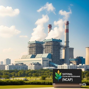 1. Flue Gas Desulfurization (FGD) System The Ministry of Environment, Forest and Climate Change (MoEFCC) had notified SO₂ emission standards for coal/lignite-based thermal power plants (TPPs) in 2015. However, due to various challenges, including limited technology providers, supply chain disruptions from the COVID-19 pandemic, and high costs, the universal applicability of these standards was reviewed. Review and Justification: The government's review of the standards considered several scientific studies on the role of TPPs in ambient air pollution. It also took into account the techno-economic viability of implementing control measures like FGD systems. The review also considered the increased carbon footprint from the operation and transport of materials (like limestone) required for these systems and the potential for increased electricity prices for consumers. Compliance and Penalties: TPPs are required to comply with the revised emission standards within the stipulated timelines. Non-compliant units will face environmental compensation penalties for continued operation beyond the deadline. 2. National Clean Air Programme (NCAP) Launched in 2019, the National Clean Air Programme (NCAP) is a nationwide initiative aimed at reducing air pollution levels by 40% by 2025-26 (from 2019-20 levels). It targets achieving the national standard of 60 µg/m³ for Particulate Matter (PM). Target Cities: The program identifies 130 non-attainment cities and million-plus population cities that have consistently exceeded air quality standards. Key Sources of Pollution: Source apportionment studies reveal that while industrial emissions are a contributor, major sources of PM2.5 pollution include vehicular emissions, road dust, construction activities, and the burning of biomass and waste. Initiatives: Development of city-specific Clean Air Action Plans. Launch of the PRANA Portal for tracking progress. Clean Air Survey for ranking cities. Implementation of specific source-based measures such as mechanized road sweeping, waste management, and promotion of clean vehicles. 3. Other Government Initiatives for Air Pollution Control The government has undertaken several other initiatives to address pollution, particularly from PM2.5 levels. Vehicular Emission Control: The country transitioned from BS-IV to BS-VI fuel and vehicle norms effective April 1, 2020. The promotion of e-mobility and alternative fuels is also a key focus. Vehicular Scrapping Policy: The Voluntary Vehicle-Fleet Modernization Program (VVMP) and an Extended Producer Responsibility (EPR) framework for end-of-life vehicles have been implemented. Industrial Emission Standards: The MoEFCC has notified emission standards for over 80 categories of industries. Monitoring and enforcement are carried out by State Pollution Control Boards under the Air (Prevention and Control of Pollution) Act, 1981. Additional Information on Flue Gas Desulfurization (FGD) Systems Flue Gas Desulfurization (FGD) is a set of technologies used to remove sulfur dioxide (SO₂) from the flue gas of fossil fuel power plants. It is a critical component for controlling sulfur oxide emissions, a major cause of acid rain and respiratory illnesses. How it Works: In a typical wet FGD system, the flue gas from the power plant is directed into a scrubber. A slurry of limestone or lime is sprayed into the flue gas. The SO₂ in the gas reacts with the limestone, forming a calcium sulfite-calcium sulfate mixture, which is then removed. Why is it Important?: SO₂ emissions can lead to the formation of fine particulate matter (PM2.5), which can penetrate deep into the lungs and cause serious health issues. They are also a primary precursor to acid rain, which damages ecosystems and infrastructure.