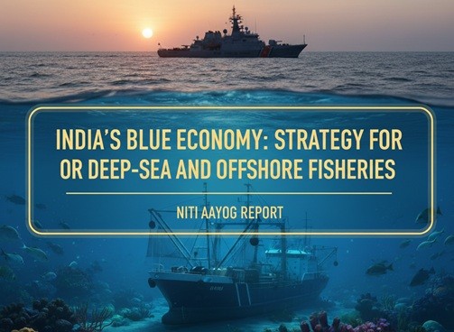विषय: नीति आयोग की रिपोर्ट – “भारत की ब्लू इकॉनमी: गहरे समुद्री और अपतटीय मत्स्यपालन के दोहन की रणनीति” तिथि: 13 अक्टूबर 2025 मुख्य बिंदु: 1. भारत की स्थिति: