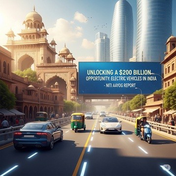 NITI Aayog released a report titled ‘Unlocking a $200 Billion Opportunity: Electric Vehicles in India’, which provides a timely and comprehensive assessment of current challenges and highlights key measures needed to accelerate India’s transition to electric mobility. नीति आयोग ने ‘अनलॉकिंग ए $200 बिलियन ऑपर्च्युनिटी: इलेक्ट्रिक व्हीकल्स इन इंडिया’ शीर्षक रिपोर्ट जारी की, जो वर्तमान चुनौतियों का सामयिक एवं व्यापक मूल्यांकन प्रस्तुत करती है और साथ ही भारत के इलेक्ट्रिक आवागमन के क्षेत्र में तेजी से बदलाव लाने के लिए आवश्यक प्रमुख उपायों पर प्रकाश डालती है।