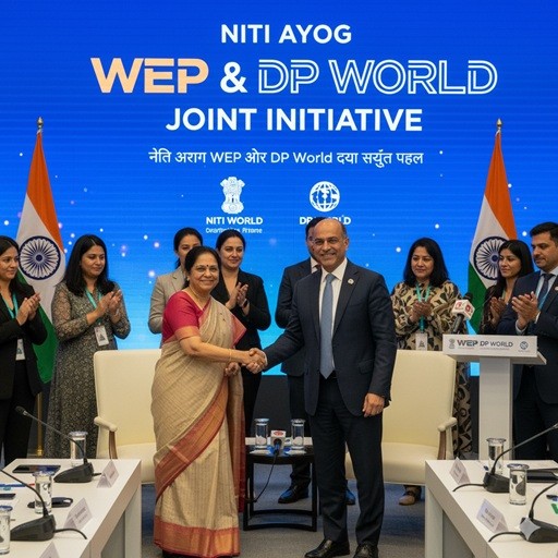 Jointly launched by NITI Aayog’s Women Entrepreneurship Platform (WEP) and DP World. / NITI Aayog की Women Entrepreneurship Platform (WEP) और DP World द्वारा संयुक्त रूप से लॉन्च।