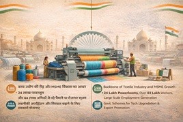 पावरलूम सेक्टर भारत के वस्त्र उद्योग की रीढ़ है, जो बड़े पैमाने पर रोजगार सृजन, निर्यात वृद्धि और एमएसएमई आधारित औद्योगिक विकास में महत्वपूर्ण भूमिका निभाता है। लगभग 24 लाख पावरलूम और 44 लाख से अधिक श्रमिकों के साथ यह क्षेत्र आत्मनिर्भर भारत, मेक-इन-इंडिया और समावेशी विकास के लक्ष्यों को मजबूती प्रदान करता है। The powerloom sector forms the backbone of India’s textile industry, playing a vital role in employment generation, export growth and MSME-driven industrial development. With around 24 lakh powerlooms and over 44 lakh workers, the sector significantly supports the objectives of Atmanirbhar Bharat, Make in India and inclusive economic growth.