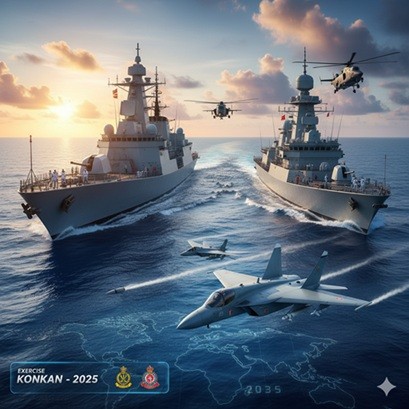 The bilateral maritime exercise “KONKAN – 2025” between the Indian Navy and the Royal Navy (UK) commenced on 05 October 2025 off the western coast of India. Over the past two decades, this exercise has grown significantly in scale and complexity, reflecting the enhanced interoperability and mutual understanding between the two navies in maritime operations. Duration and Structure The exercise will be conducted from 05 to 12 October 2025, in two phases: 1. Harbour Phase 2. Sea Phase Strategic Importance Exercise Konkan – 2025 reaffirms the shared commitment of India and the UK to ensuring a free, open, and secure Indo-Pacific. It symbolizes the deepening maritime partnership under the “India–UK Vision 2035”, which seeks to enhance strategic cooperation in defence, trade, technology, and global security. Significance Exercise Konkan – 2025 serves as a vital platform for: • Strengthening strategic relations between India and the UK. • Enhancing interoperability and coordination between their naval forces. • Contributing to regional maritime stability and security in the Indian Ocean Region (IOR).