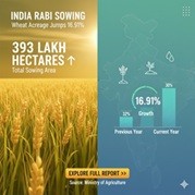 Rabi sowing crosses 393 lakh hectares; wheat acreage records highest growth of 16.91 percent देश में रबी फसलों की बुवाई 393 लाख हेक्टेयर से अधिक, गेहूं में सर्वाधिक 16.91 प्रतिशत वृद्धि दर्ज