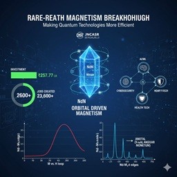 Rare-Earth Materials and Their Importance: Play a critical role in modern technology (electric vehicles, smartphones, wind turbines, defense systems). Neodymium-based permanent magnets are indispensable due to their strong magnetic performance. Conventional Magnetism vs. New Discovery: Conventional Understanding: Magnetism in such materials was primarily believed to be driven by the electron's spin (responsible for conventional ferromagnetism). New Discovery (in NdN): A study by the Jawaharlal Nehru Centre for Advanced Scientific Research (JNCASR) demonstrated for the first time that single-crystalline thin films of Neodymium Nitride (NdN) exhibit ferromagnetism originating from the orbital angular momentum of electrons. This marks a fundamental departure from conventional magnetic behavior. Orbitronics: This groundbreaking discovery opens new possibilities in the emerging field of "Orbitronics." Orbitronics aims to harness the orbital motion of electrons for future quantum and spintronic technologies. It could pave the way for next-generation information and memory technologies that go beyond the limitations of spin-based devices. Significance and Impact: Revolutionary Shift in Understanding Magnetism: By controlling the orbital degree of freedom, a new class of materials can be envisioned where both spin and orbital moments can be tuned to design faster, more energy-efficient magnetic and quantum devices. Industrial Applications: The discovery is particularly timely as global competition for rare-earth materials intensifies. Neodymium is a key component in high-performance magnets and a strategic material in clean energy and defense sectors. India's Position: With approximately 8% of the world's rare-earth reserves, India is well-positioned to contribute to this critical area of materials innovation.