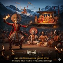 Role of Sangeet Natak Akademi: Established in 1953, it is India’s apex body promoting performing arts. The Akademi documents, archives, and supports these traditions through scholarships, training, research, and festivals. It collaborates with UNESCO and state bodies to preserve ritual theatres and provides grants for artists. Conclusion: From the stylized gestures of Kutiyattam in Kerala temples to the rhythmic dances of Ramman in Garhwal, these ritual theatres act as a timeless bridge between the divine and the human, expressing living traditions that nurture identity, continuity, and collective spirit.