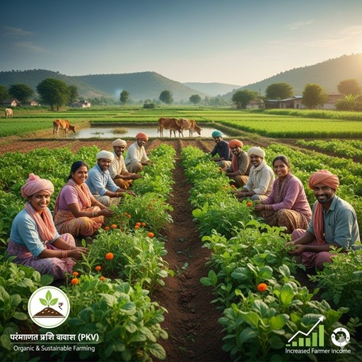 The Paramparagat Krishi Vikas Yojana (PKVY), launched in 2015 under the National Mission on Sustainable Agriculture (NMSA), has emerged as a cornerstone of India’s organic farming movement. Its objective is to promote chemical-free, eco-friendly farming while improving farmers’ income and restoring ecological balance. (परंपरागत कृषि विकास योजना (पीकेवीवाई), जो 2015 में राष्ट्रीय सतत कृषि मिशन (एनएमएसए) के तहत शुरू की गई थी, भारत में जैविक खेती आंदोलन की आधारशिला बन चुकी है। इसका उद्देश्य रासायन-मुक्त, पर्यावरण-अनुकूल खेती को बढ़ावा देना, किसानों की आय में सुधार लाना और पारिस्थितिक संतुलन को पुनर्स्थापित करना है।)