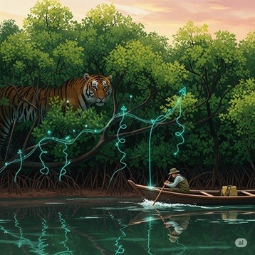 Key Initiatives for Mangrove Conservation MISHTI Scheme: A key initiative to promote mangrove plantation. Coastal Regulation Zone (CRZ) Notifications: These regulatory measures curb destructive activities and promote natural regeneration of mangroves. Convergence of CAMPA and MGNREGS: These schemes coordinate afforestation and ecological restoration efforts. Integrated Coastal Zone Management (ICZM): This project, implemented in collaboration with the West Bengal state government, addresses threats like salinization and erosion through mangrove afforestation and the strengthening of embankments. Biodiversity and Community Participation The Sundarbans is a crucial habitat for many species, including the Royal Bengal Tiger. Special conservation efforts are also being undertaken for its protection: Project Tiger: Under this project in the Sundarbans Tiger Reserve, anti-poaching camps, habitat improvement, and monitoring using camera traps and satellite telemetry are being implemented. Green India Mission: This mission provides additional support for the restoration of mangroves and other wildlife. Local Community Involvement: Through Joint Forest Management Committees (JFMCs), local communities are actively involved in mangrove management and eco-development, which also helps secure their livelihoods. These coordinated efforts aim to protect biodiversity, sustain local livelihoods, and strengthen the Sundarbans' role as a natural barrier against cyclones.