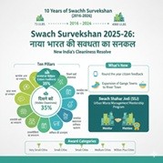 विश्व का सबसे बड़ा शहरी स्वच्छता सर्वेक्षण, स्वच्छ सर्वेक्षण (एसएस), एक दशक पूरा कर चुका है। एसएस केवल एक वार्षिक सर्वेक्षण नहीं बल्कि एक शक्तिशाली प्रबंधन उपकरण है। कचरा मुक्त शहर बनाने के उद्देश्य से यह परिवर्तन को गति दे रहा है। शहरों के बीच एक स्वस्थ प्रतिस्पर्धा को बढ़ावा देते हुए, स्वच्छ सर्वेक्षण ने स्वच्छता के लिए मैट्रिक्स को परिभाषित किया है। इसने मूल्यांकन मापदंडों की बेंचमार्किंग, स्वच्छ शहर के लिए रोडमैप बनाने, स्वच्छ शहर बनने के लिए कदम और घटकों और अंततः जमीनी स्तर पर दिखाई देने वाली स्वच्छता के माध्यम से स्वच्छ शहरों को सक्षम बनाने में मदद की है। पिछले 10 वर्षों में, स्वच्छ सर्वेक्षण सहयोग और सामूहिक जिम्मेदारी के एक उल्लेखनीय उदाहरण रहा है, जो स्वच्छता को जीवन शैली बनाने के लिए राष्ट्र की प्रतिबद्धता को दर्शाता है - वास्तव में स्वभाव स्वच्छता संस्कार स्वच्छता को प्रतिबिंबित करता है। 2016 में 73 शहरी स्थानीय निकायों (यूएलबी) से लेकर 2024 में 4900 यूबीएल का आकलन करने तक, स्वच्छ सर्वेक्षण शहरों को स्वच्छता मानकों को बढ़ाने और अपने नागरिकों को गुणवत्तापूर्ण सेवाएं प्रदान करने के लिए प्रेरित कर रहा है। नया क्या है पूरे साल नागरिकों से फीडबैक गंगा शहरों का रिवर टाउन के रूप में विस्तार तटीय शहरों के लिए अलग मैट्रिक्स नागरिकों का फीडबैक 32% से बढ़कर 35% हुआ दस स्तंभ: दिखने वाली स्वच्छता कचरा अलग करना और प्रबंधन ठोस कचरा प्रबंधन स्वच्छता तक पहुंच इस्तेमाल किए गए पानी का प्रबंधन मशीनीकृत डीस्लजिंग स्वच्छता की वकालत पारिस्थितिकी तंत्र को मजबूत करना स्वच्छता कर्मचारियों का कल्याण नागरिकों का फीडबैक और शिकायतों का निवारण पिछले कुछ वर्षों में, स्वच्छ सर्वेक्षण में नागरिकों की राय एक सशक्त मूल्यांकन उपकरण बन गई है। स्वच्छ सर्वेक्षण ने स्वच्छता के प्रति नागरिकों की धारणा और सहभागिता, विशेष रूप से दृश्य स्वच्छता के प्रति उनकी भागीदारी को लगातार दर्शाया है। इसे और अधिक बल देने के लिए, 2025-26 के टूलकिट को इस प्रकार डिज़ाइन किया गया है कि नागरिकों की राय को अधिक शक्ति और महत्व मिले। इस वर्ष से, नागरिक वोट फॉर माय सिटी ऐप और पोर्टल, मायगव ऐप, स्वच्छता ऐप और क्यूआर कोड सहित कई प्लेटफार्मों के माध्यम से पूरे वर्ष अपनी प्रतिक्रिया दे सकेंगे। नागरिक सत्यापन का महत्व काफी बढ़ा दिया गया है। स्वच्छ सर्वेक्षण अपने शहरी स्वच्छता ढांचे के अंतर्गत गंगा-बहुल शहरों का आकलन करता है। अब इसका दायरा बढ़ाते हुए, देश भर के नदी-बहुल शहरों को भी इसमें शामिल किया जाएगा। तटीय क्षेत्रों को स्वच्छ सर्वेक्षण के दायरे में लाने के लिए एक अलग मैट्रिक्स तैयार किया गया है । आवासन और शहरी कार्य मंत्रालय ने सि