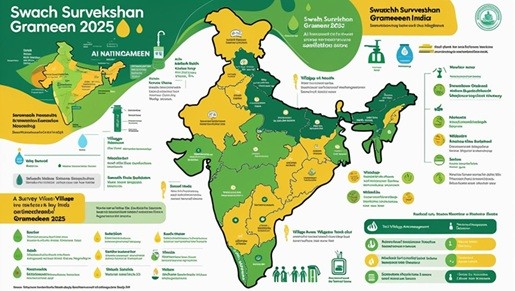 Swachh Survekshan Grameen 2025 is a nationwide survey to rank villages, districts, and states on sanitation, covering 21,000 villages across India. स्वच्छ सर्वेक्षण ग्रामीण 2025, 21,000 गांवों को कवर करने वाला एक राष्ट्रव्यापी सर्वेक्षण है, जो स्वच्छता के आधार पर राज्यों, जिलों और गांवों को रैंक देगा।